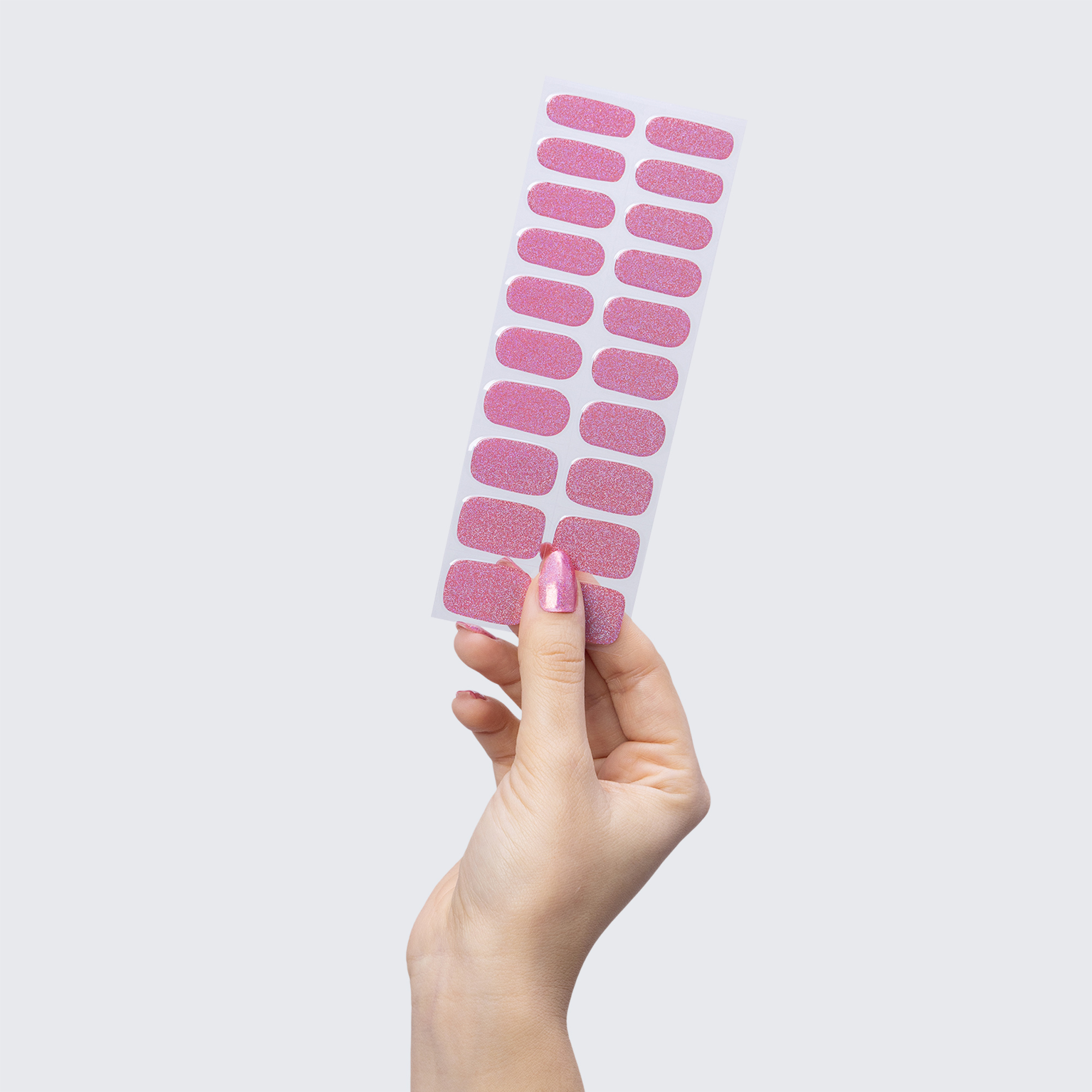 Our GLAM & GO gel nail wraps ensure that no matter how complex your chosen nail design, the application process remains incredibly simple. Our GLAM & GO gel nail wraps require no glue, base coat, or top coat—just peel them off the packaging, apply them to your nail, trim to size, cure twice, and voilà!