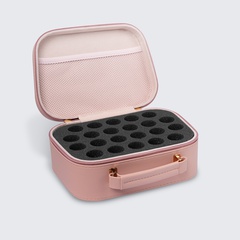 The gelmoment storage case is a sturdy organizer bag with a waterproof PU leather exterior. It comes with a thick foam insert that holds polish bottles securely in an upright position. This insert is also removable, making the bag a multipurpose storage case that comes in handy both at home and on the go.
